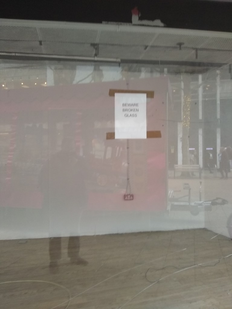 Beware broken glass,